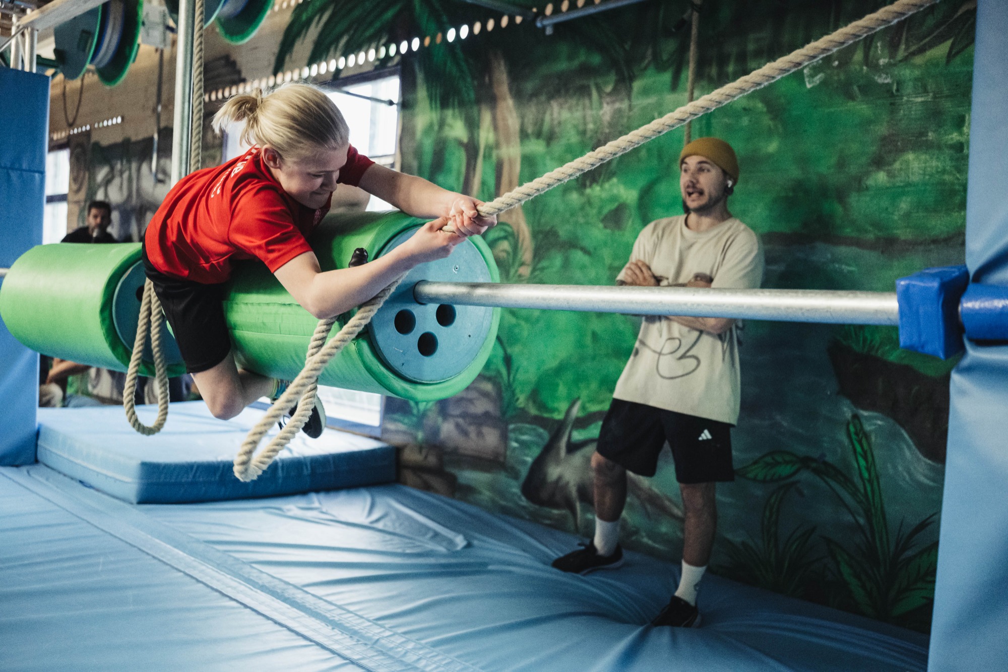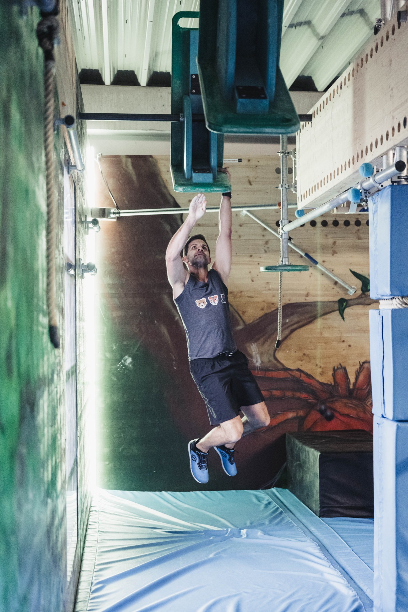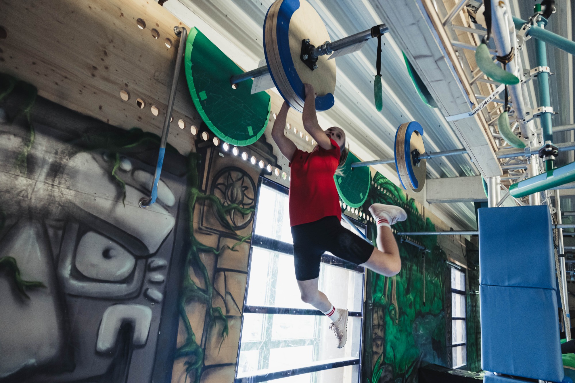 Auf zwei Etagen findet ihr verschiedenste Hindernisse für Ninjas von Anfänger- bis Profi-Niveau.